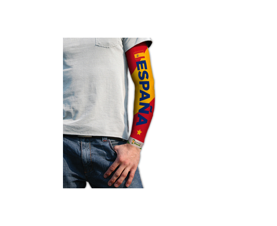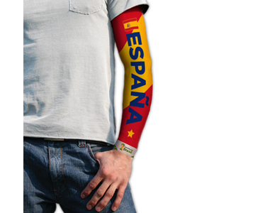 World Cup Tattoo Sleeve - Spain. This Tattoo Sleeve is instantly removeable from the arm, comfortable to wear and down not harm your skin, single sleeve only. Support your team with passion and fashion. Official FIFA World Cup 2014 Tattoo Sleeves. Support Spain this summer with the must have accessory - Official FIFA Tattoo Sleeve. This design comes in Spain`s famous Red & Yellow colours, with Spain printed on the front of the sleeve. Instantly put it on / take it off at your upcoming World Cup parties and gatherings this summer, and be the envy of your friends & family! Or even better.....get them to all wear together! Available in other Official FIFA National team colours - and helping to bring this summers Brazilian samba tournament to life! Material: 92% Nylon 8% spandex. This item is an official Fifa World Cup Product. 0693204600727