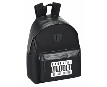 Parental Advisory Backpack - 32 cm is an Official Parental Advisory product comes in Parental Advisory black Range. The backpack is black with black trim on the edge and features a printed Parental Advisory logo. On the inside there is one main zip fastening and one front zip pocket with padded shoulder straps. This Parental Advisory Backpack is perfect for any Parental Advisory Fan. Approx Size: 32x40x14cm made from 100% Polyester.