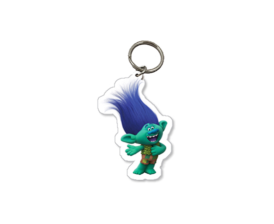 This Trolls Keyring features Branch print. It comes with a key chain and metallic ring for holding the key. It is made of plastic in the shape of character. Not suitable for child under the age of 36 months. It is an official licensed product.