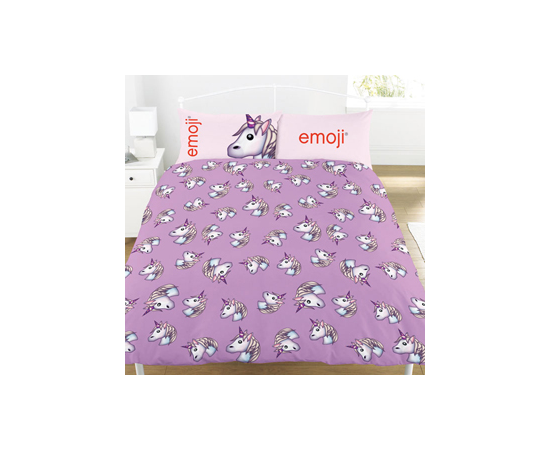 Emoji Unicorn Double Duvet Set comes complete with two pillowcase which measures approx 50cm x 75cm, the duvet cover measures approx 198CM x 198CM and will fit any standard bed. The Panel Duvet cover is made from 50% Cotton & 50% Polyester and comes with full colour printed Emoji Unicorn print and branding. Wash and handling instructions label on the packaging. This Emoji Unicorn duvet set is an official product.