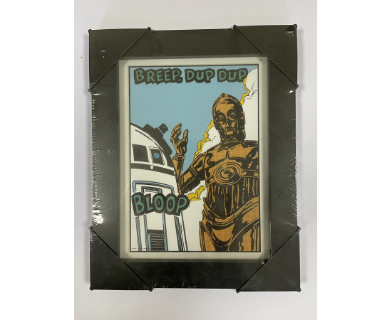 Star Wars Bloop Framed Picture. It features print/picture relating to Star Wars. The frame measures approximately 24cm x 19cm and comes with stand. Will be nice gift to Star Wars fan.