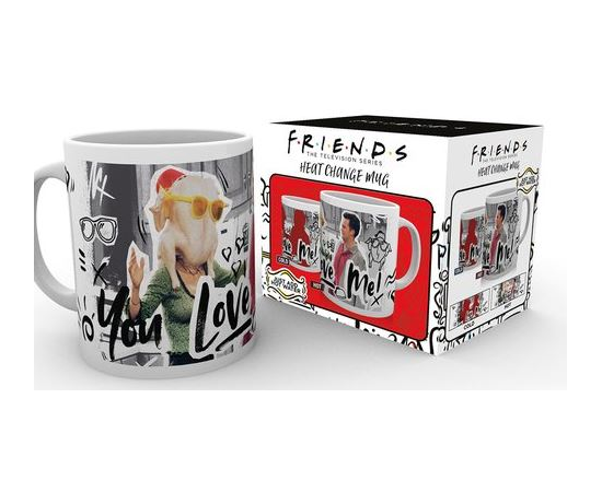 Friends ceramic heat changing mug. The surface of this mug changes according to the intensity of heat. When you pour in hot beverage or water the design changes and the TV series cast print appears. The mug can hold approximately 10oz. The mug is not microwave safe. Not dishwasher safe. It comes boxed making it ideal to gift any Friends fan. 100% Official licensed product.