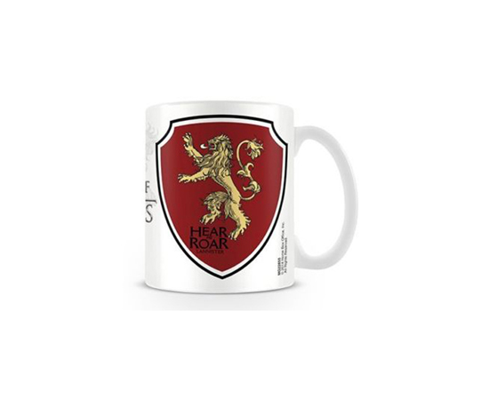 This Game Of Thrones Mug is a ceramic mug. It features house Lannister logo print on the surface and comes with HBO branding. It is a mulit coloured mug and can hold 11oz. Wash and care instructions on the packaging. It comes in a box making it ideal to gift any Game Of Thrones fan. This mug is an official licensed product. 5050574228558