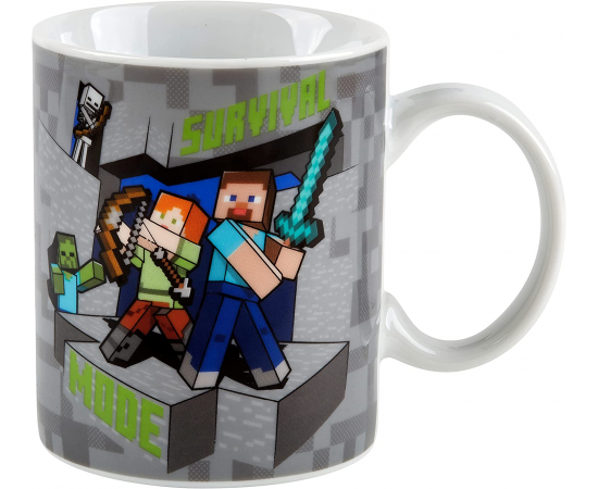 Minecraft Ceramic Mug. It features Survival Mode theme print from the popular video game Minecraft. It is a multi colour mug and can hold 11oz. Not suitable for dishwasher or microwave use. Wash and care instructions on the packaging. Comes in a gift box making it ideal to gift Minecraft fan. This mug is an official licensed product.