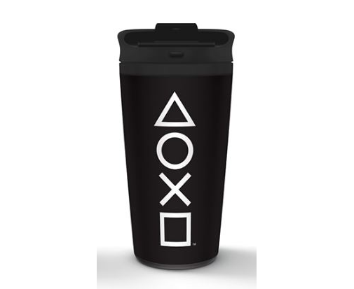 This Playstation Travel mug is made of metal with detachable lid. It features logo and controller button print on the surface. The mug measures approximately 20cm high and 8cm in diameter and has a holding capacity of 16oz/450ml. Wash and care instructions label comes with the travel mug. 100% official licensed product.