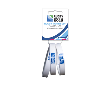 Rugby World Cup 2015 3PK Wristband - White. The wristbands are perfect for wearing anytime on and off the pitch whilst showing support to the Rugby World Cup, and a fantastic gift for fans of all ages. The Rubber Wristband is an official product produced under licence for Rugby World Cup 2015. 5039360720063