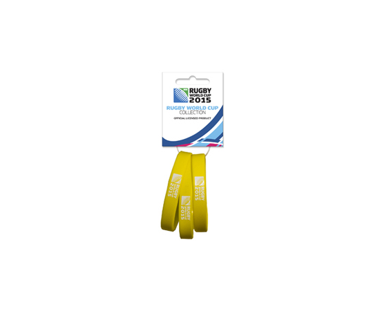 Rugby World Cup 2015 3PK Wristband - Yellow. The wristbands are perfect for wearing anytime on and off the pitch whilst showing support to the Rugby World Cup, and a fantastic gift for fans of all ages. The Rubber Wristband is an official product produced under licence for Rugby World Cup 2015. 5039360720032
