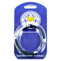 The Leicester City bracelet is made of silicone. It features silver inlay running across the circumference and stainless steel clasp. It has stainless steel plated surface with printed club crest. It measures approximately 20cm long and 1cm wide. This bracelet will showcase style statement whilst showing support for your team. It can be ideal gift to any Leicester City fan. This bracelet is an official licensed product. 5060453281956