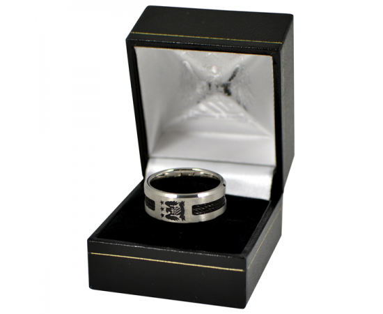 The Manchester City Black Inlay Ring size medium, is a brand new fashion accessory to make the perfect style statement whilst showing your allegiance and undying love for your fav club. This well made stylish stainless steel ring features cool black inlay, club crest and comes complete in a blister gift pack, making it an ideal gift. Why not discover our range of other available new addition fashion accessories and make a style statement to capture the promising hearts.. The Manchester City Black Inlay Ring is an official Manchester City FC product and is produced under licence for Manchester City FC. 5060351642286