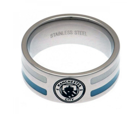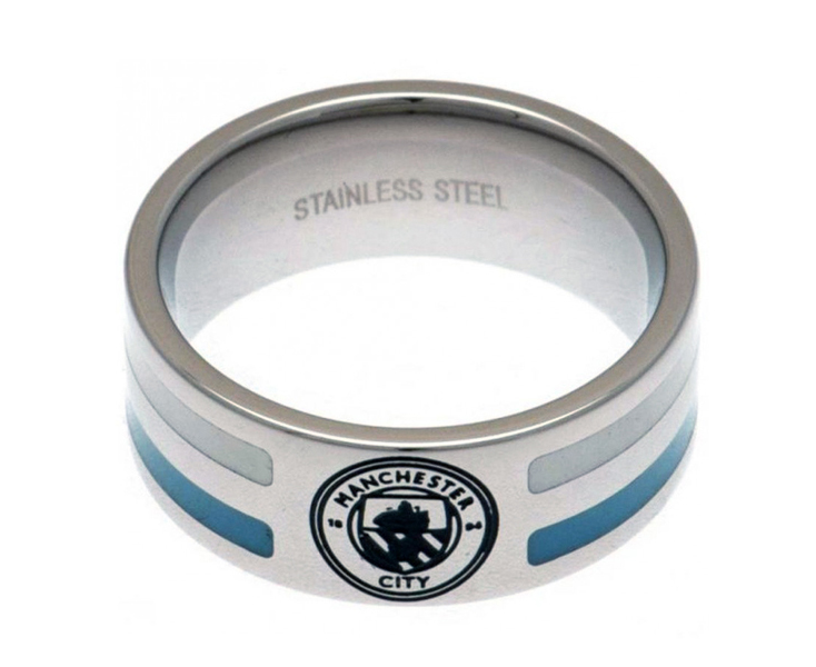 The Manchester City Colour Stripe Ring - Large is a new fashion accessory to make the perfect style statement whilst showing your support for your favourite club. It is made of stainless steel and features colour stripe and club crest. Comes complete in a gift box, making it an ideal gift. 100% official licensed merchandise.