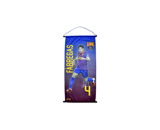The Barcelona Player Large Pennant - Fabregas is a hangable design and is perfect for hanging on any Barcelona fan's wall. This Barcelona pennant is in club colours, features the famous player - Fabregas along with the teams crest. What else, his iconic number 4 & Signature makes it a perfect personalised gift. The pennant measures approximately 110cm x 48cm, made from 100% Polyester and has a matching string at the top for hanging. This Pennant is an official Barcelona product and is produced under licence for Barcelona FC. 5055632500584