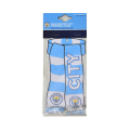 The Manchester City Show Your Colours Window Sign is a mini metal scarf sign. It is made in club colour featuring club crests and text "CITY". This sign is made from a durable pressed steel, will not tear, crease or fade. It measures approximately 18x9 cm. It is an official licensed product and can be ideal gift for any Manchester City supporter.