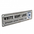 Tottenham Retro Window Hanging Sign. It is a metal window sign designed in retro theme. The hanging sign features old club crest and text "WHITE HART LANE" on the surface. Made from a durable pressed steel, will not tear, crease or fade and measures approximately 26cm x 7cm. It is an official licensed product.
