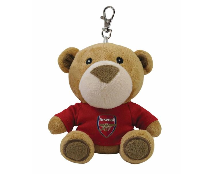 Arsenal Bag Buddy Bear. It is a soft to touch plush bear made of soft fabric. The bear comes with top featuring club crest at front and print NO. 1 FAN at the back. Measures approximately 12 cm tall and comes with a metal clip to engage it on your bag or luggage. Will be nice gift to Arsenal FC fan. Wash and care instructions on the label. It is an official licensed product.