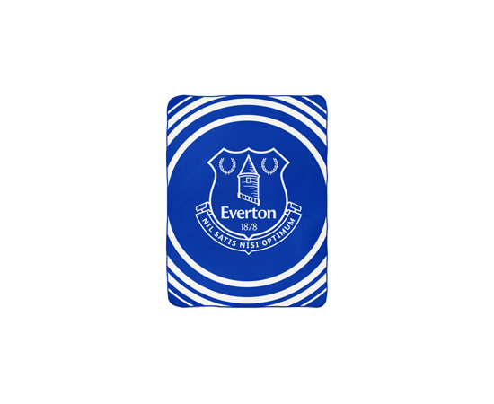 Everton Pulse Fleece Blanket. The blanket features club crest in pulse design background and will be ideal gift to Everton fans. It measures approximately 150x125 cm and is made from 100% Polyester. Packaging label features wash and care instructions. 100% Official licensed product.