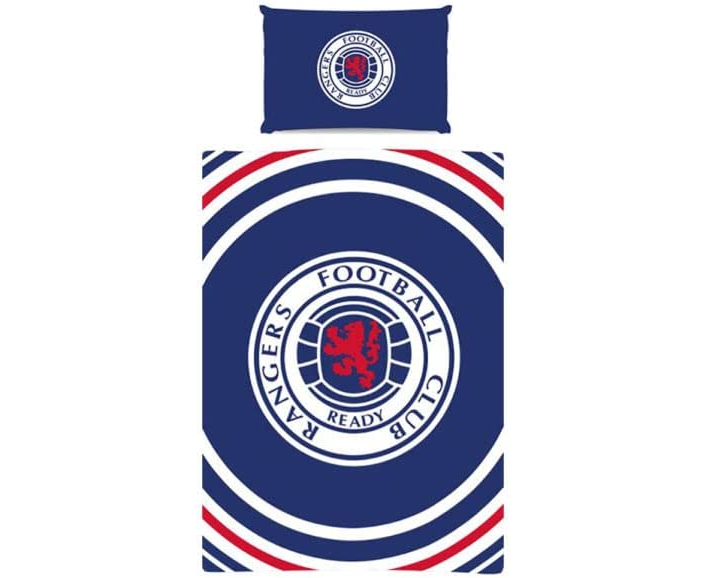 Rangers Reversible Pulse Single Duvet Set. It comes with one pillowcase which measures approximately 50x75 cm and the duvet cover measuring approximately 135x200 cm. This duvet set features club crest in pulse design and will fit any standard single bed. The main feature of the duvet is that it can be used both the sides. Made from 52% Polyester and 48% Cotton. It is an official licensed product.