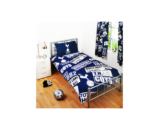 The Tottenham Patch Single Duvet Set comes complete with one pillowcase which measures approx 50cm x 75cm, the duvet cover measures approx 135cm x 200cm and will fit any standard single bed. It features the patch design with Tottenham crest and street sign prints. The Duvet cover is made from 70% Polyester & 30% Cotton. Wash and handling instructions label on the packaging. This Tottenham duvet set is an official Tottenham product and is produced under licence for the FC Tottenham. 5015860187773