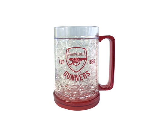 The Arsenal Football Club Official Crested Freezer Mug features a large club crest outside on the mug and its authenticity makes a ideal gift or souvenir for any Arsenal FC supporter. This freezer mug is made from plastic and internally filled with liquid for quick freezing, holds 16oz. To use, simply place the mug upside down in your freezer, when frozen solid, remove and fill with your favourite beverage and enjoy the derby without moving from the comfort of your inflatable chair(need to buy seperately). Not diswasher & microwave safe. This is an Official Arsenal FC Merchandise. 5030260201980