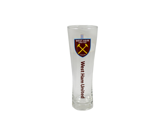 The West Ham Wordmark Peroni Pint Glass is a slim pint glass measuring approximately 24cm tall. The glass features a printed club crest on the front. The pint glass comes fully boxed in a blister pack ideal to gift any West Ham fan. It is an official licensed product.