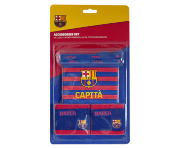 The Barcelona Accessories Set contains 2xwrist bands,1xcaptain armband and laces featuring club crest. This set comes in a blister pack and will be nice gift to Barcelona fans. Not suitable for children under age of 36months. 100% official licensed product.