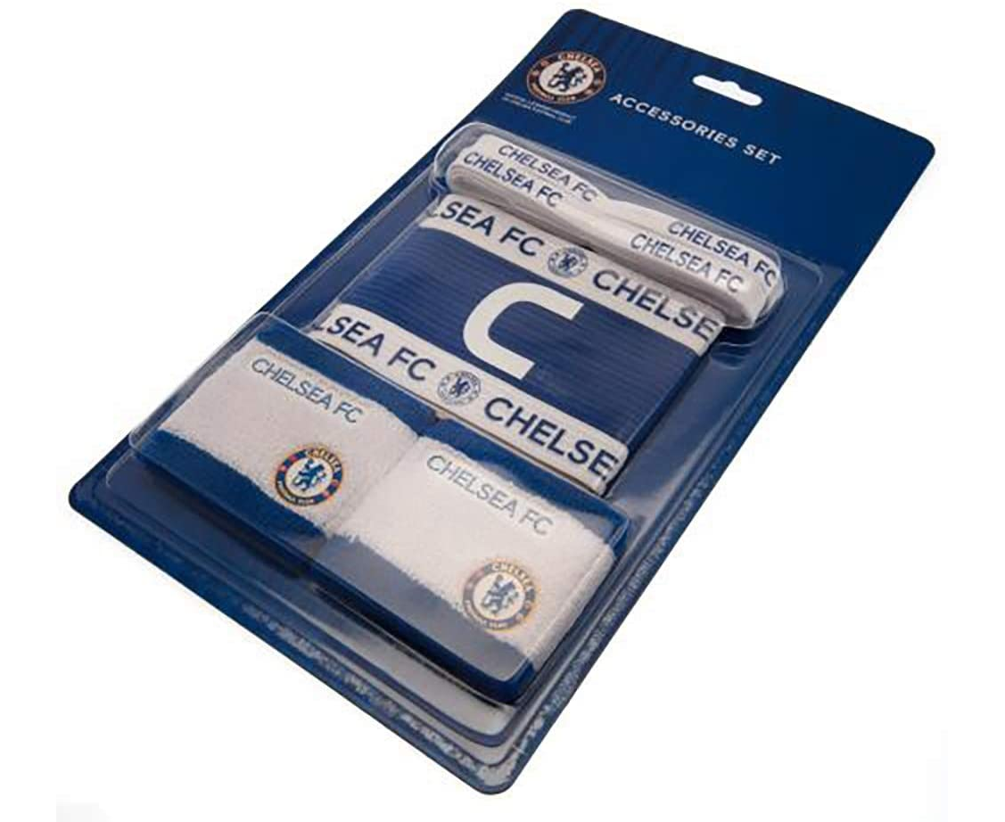 Chelsea Accessories Set contains 2xWristbands, 1xCaptain Armband and Shoe laces all featuring club crest/name. This set comes in a blister pack and will be nice gift to Chelsea fans. Not suitable for children under the age of 36months. 100% Official licensed product.