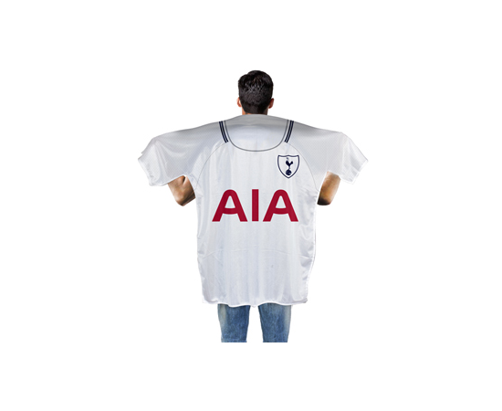 Tottenham Kit Shaped Banner or Body Flag is made in club colours with dye sublimation printing. It is a kit replica featuring club crest, sponsor and is made of 100% Polyester. The banner measures approximately 145x114 cm and is perfect to display on your wall or use as a body flag during the match to pledge your allegiance to your team. 100% Official licensed product.