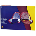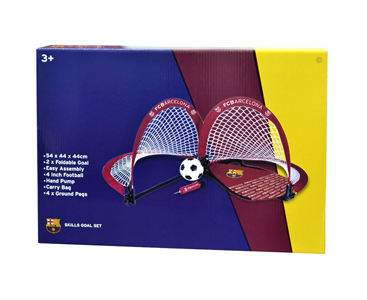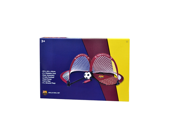 The Barcelona Skills Goal Set is a perfect goal set which is easy to carry due to its light weight. The Set approx size 54x44x44cm, consists of 2 x Foldable Goal (easy to assemble), 4 inch Football, Inflating Hand Pump, Carry Bag with a handle/shoulder strap and 4 x Ground Pegs. This Goal set makes a fantastic gift for every football fan who loves a kick about in the summer. The football goal set is also ideal for using inside the garden, for a kickabout at the park or to train your football skills on the pitch. This is an official Barcelona Football Club Merchandise. 5037970009271