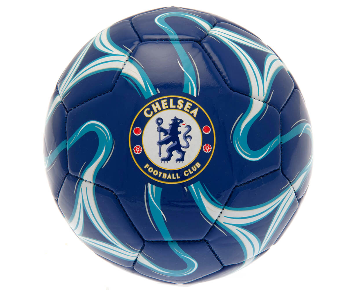 Chelsea Colour Cosmos Football - Size 5. It is blue colour 26 panel size 5 football. Features club crest print on the surface in cosmos design. This football is made of PVC. Football is deflated for ease of posting, need to inflate it with a pump (not provided). It makes nice gift to Chelsea FC fans. Suitable for 14 years and older. 100% official licensed product.