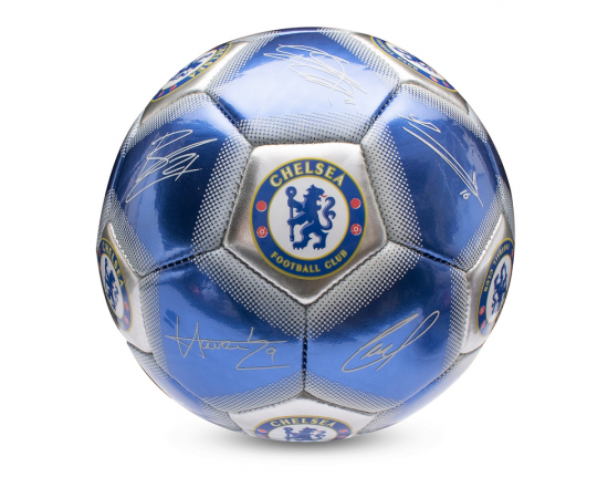Chelsea Signature Mini Football - Size 1. It comes in club colours blue with metallic finish. Features multiple club crests and printed players signatures acorss the surface. Made of PVC (synthetic) and will be nice gift idea to Chelsea FC kid fans. Not inflated for ease of posting. 100% Official licensed product.