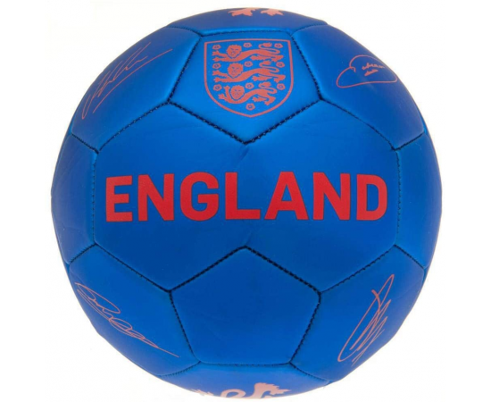 This England FA Football is size 5 football. It is blue and red in colour, matt finshed with stitched panel design. Features players printed signature and FA logo on the surface. This ball is made of PVC (synthetic) and will makes a fantastic gift to any England fans. Football is not inflated for ease of posting, need to inflate it with a pump (not provided). 100% official licensed product.