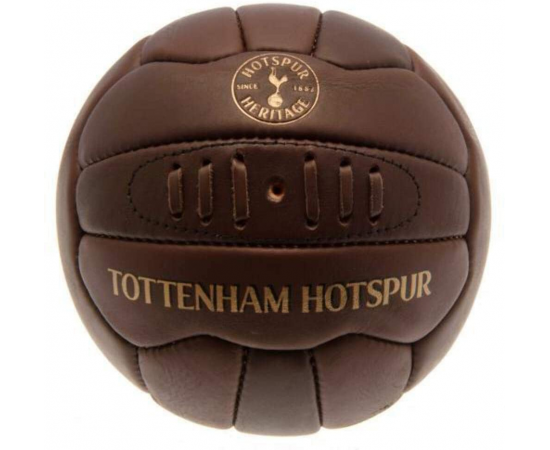 Tottenham Retro Football is size 5 football. It is brown colour 15 panel heritage football. Features embossed club crest and gold print text TOTTENHAM HOTSPUR on the surface. Made of genuine leather and will make a fantastic gift for Tottenham FC fans. Football is not inflated for ease of posting, need to inflate it with a pump (not provided). 100% official licensed product.