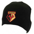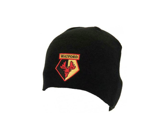 This Watford Beanie Hat is Black in colour. It is made from 100% Acrylic fabric. This adult hat features embroidered club crest and is one size fits all. It makes a great gift to any Watford fan and is ideal for wearing during cold winter. 100% Official licensed product.