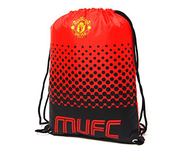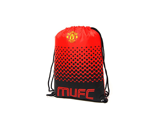 The Manchester United Gym Bag is designed in fade style. It features printed club crest and text "MUFC" stenciled on the front. The bag is in club colours with a simple black drawstring design. It measures approximately 45cmx34cm (flat). It has a large main compartment making it easily adapatable as a school or gym bag ideal for carrying training gear, shoes or boots. It is made of 100% Polyester. It is an official licensed product.