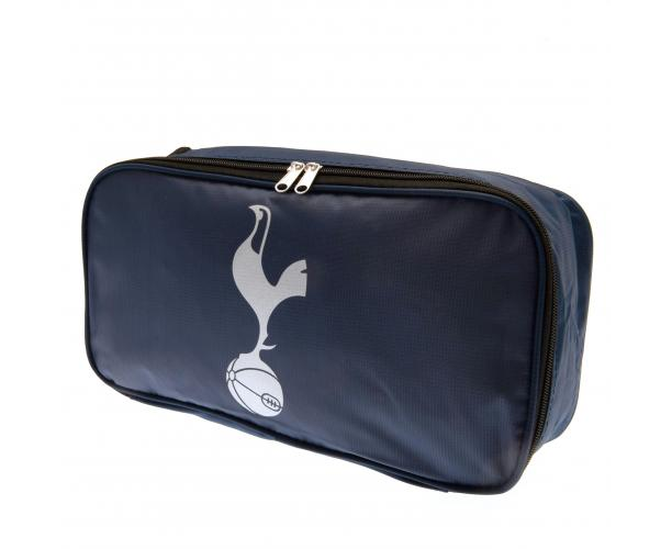 Tottenham Colour React Shoe Bag. It is a new design zip-up shoe bag, navy in colour and features club crest on either side of the shoe bag. This shoe bag will be ideal for storing or carrying your football boots or any shoes. It measures approximately 18x10x36 cm and is made of 100% Polyester. Will be nice gift to Tottenham FC fans. It is an official licensed product.