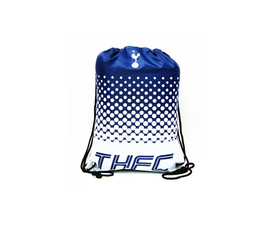 The Tottenham Fade Gym Bag is a new gym bag designed in Fade style. It features a printed club crest and text "THFC" stenciled on the front. The bag is in club colours with a simple black drawstring design. It measures approximately 45cmx34cm (flat). It has a large main compartment making it easily adapatable as a school or gym bag ideal for carrying training gear, shoes or boots. It is made of 100% Polyester. This item is an official licensed product. 5015860249150