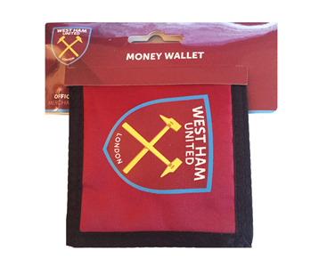 The West Ham Money Wallet is a new design claret colour wallet. It is made of nylon and features printed club crest on the front. The wallet comes with mutliple card slots and compartments for cash. It comes with header card and euro hook for hanging. It will be a perfect gift for any West Ham fan. This is an official licensed product. 5030260208781