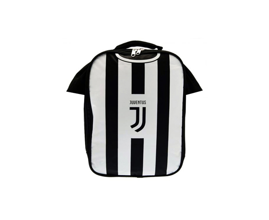 The Juventus Kit Lunch Bag comes in a unique kit design. It has an insulation inside, ideal for keeping your lunch cool. It is black/whihte in colour featuring club crest. The bag includes a zipper and name tag at the bottom. The lunch bag measures approximately 30x23x8cm. 100% official licensed product.