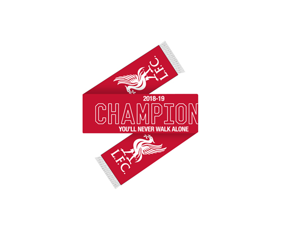 The Liverpool 2018/19 Champions Scarf comes in red and white colours with stitched white coloured tassles at each end. The scarf has Liverpool club crest on both ends and features text "2018-19 CHAMPIONS YOU'LL NEVER WALK ALONE". It is a 10 Gauge scarf made from 100% Acrylic fabric. Features a label with washing instructions. The scarf will be ideal gift to any Liverpool fan and is perfect for keeping warm during the colder months. Official licensed product.