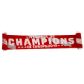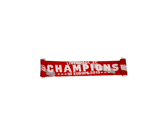 The Liverpool Champions Of Europe 2019 Scarf comes in red, white and grey colours with stitched white coloured tassles at each end. The scarf has Liverpool club crest on both ends and features text "CHAMPIONS OF EUROPE 2019". It is a 10 Gauge scarf made from 100% Acrylic fabric. Features a label with washing instructions. The scarf will be ideal gift to any Liverpool fan and is perfect for keeping warm during the colder months. 100% official licensed product.