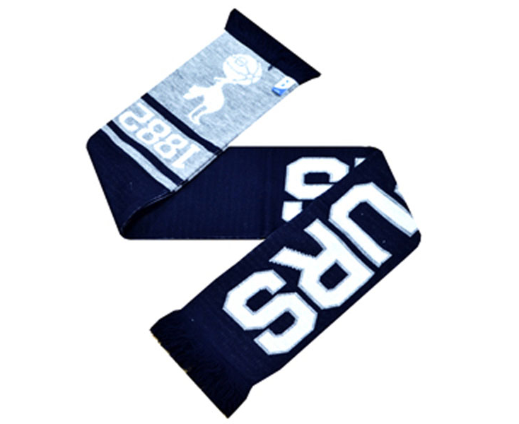 The Tottenham Nero Scarf is a new scarf design in their famous navy/grey/white colours with stitched tassles at each end. The scarf features the Tottenham club crest on one far end and Tottenham FC 1882 stencil styled logo in the end. Its a 10 gauge scarf made from 100% acrylic fabric and features a label inside with full washing instructions. The Tottenham Scarf is a ideal gift for any fan and is perfect for keeping warm during the colder months. This is an Official Tottenham FC Merchandise. 5015860135507