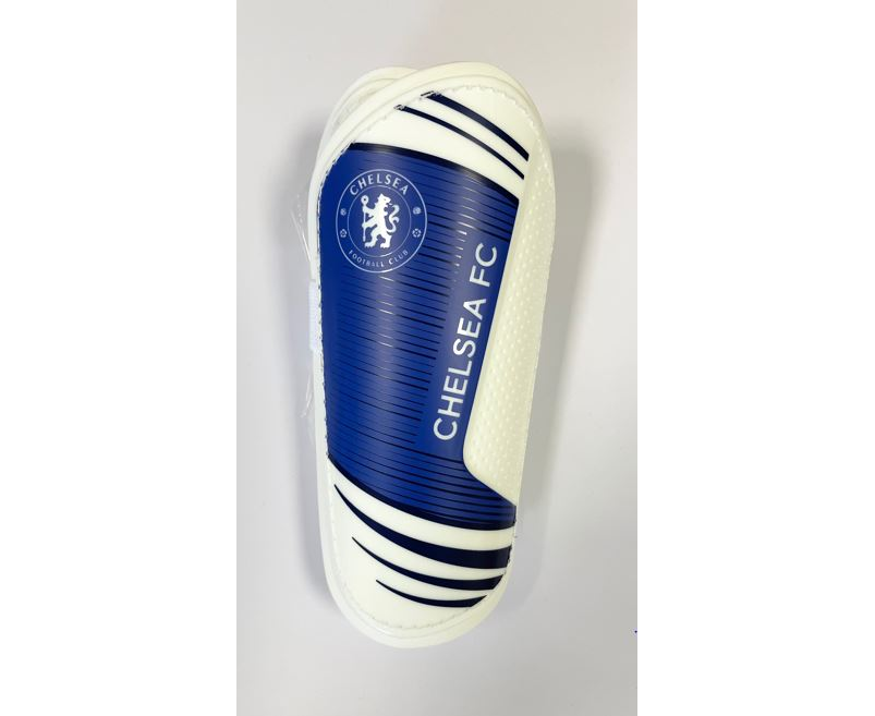 Chelsea Slip In Shinguards - Junior. They are ergonomically shaped, lightweight and provides protection with moulded plastic shell featuring a comfortable padded interior and elastic self-stick velcro strap. The shinguards are blue/white in colour and features printed club crest and text CHELSEA FC. It comes in a full colour grip seal bag. Size, care instructions at the back. It is an official licensed product.