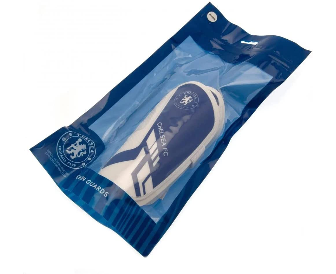 Chelsea Slip In Shinguards - Youth are ergonomically shaped and lightweight. This shin pad provides protection with moulded plastic shell featuring a comfortable padded interior and elastic self-stick velcro strap. The shinguards are blue/white in colour featuring a printed club crest. It comes in a full colour grip seal bag. Size, care instructions at the back. 100% official licensed product.