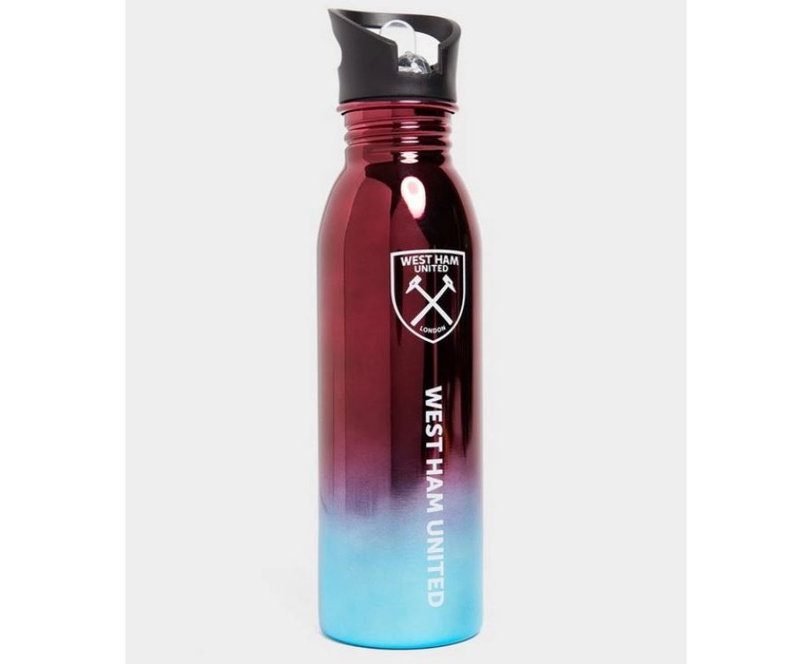 West Ham Stainless Steel UV Water Bottle - 700ml. It is made in stylish UV finish design. Features club crest and text WEST HAM UNITED print on the surface. It is maroon/blue colour, made of stainless steel and can hold up to 700ml. Not suitable for carbonated drinks. Not dishwasher safe. Not suitable for children under the age of 36 months. 100% Official licensed product.