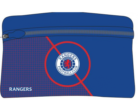 Rangers Centre Spot Flat Pencil Case. The pencil case comes in team colours blue/red in centre spot design. Made of neoprene and features club crest and text RANGERS print on the front. This pencil case can hold pencils, pens and other stationery items and can be a part of your kids back to school kit. It is an official licensed product.
