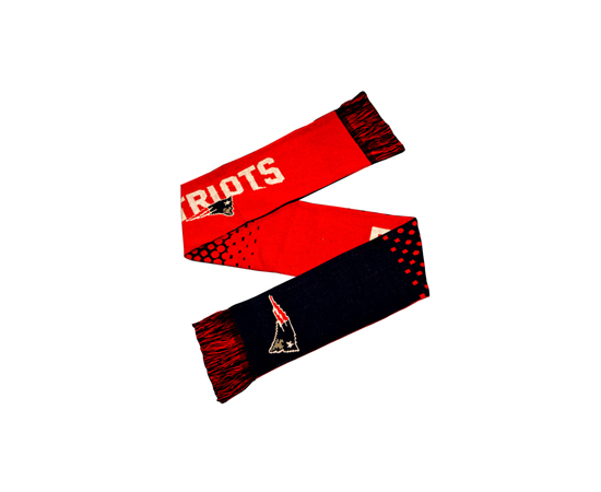The New England Patriots Fade Scarf is designed in the team colours with stitched tassles at each end. The scarf features the team crest on far ends and text "PATRIOTS" runs on both sides of the scarf. It is a 10 gauge scarf made from 100% Acrylic fabric. Label inside with full washing instructions. This Scarf will be an ideal gift to any New England Patriots fan. This is an official licensed merchandise. 5015860238062