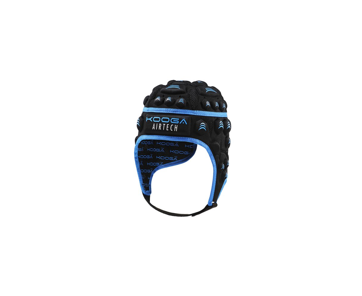 Kooga Airtech Loop II Headguard Black Blue - Adult Small. IRB Approved. EVA foam Padding. Laces to back to adjust fit and adjustable velcro chin strap. Official Kooga Rugby product. Size Circumferences: 56cm. 5051850305857